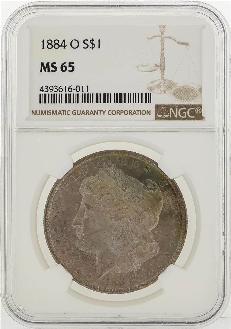 One 1884-O $1 Morgan Silver Dollar Coin w/ Nice Toning NGC MS65. NGC Certified.