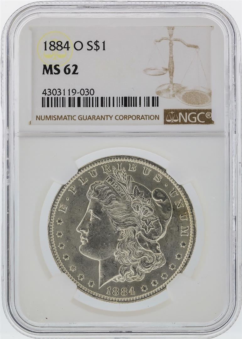 One 1884-O $1 Morgan Silver Dollar NGC Graded MS62. NGC Certified.