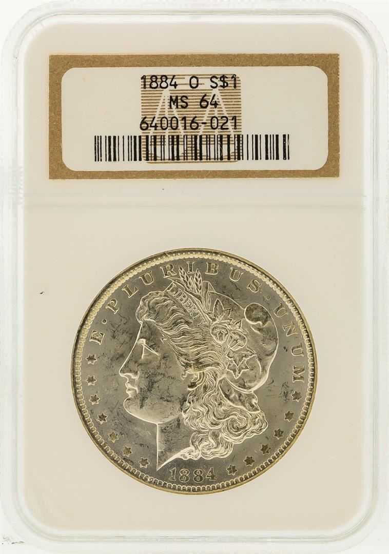 One 1884-O $1 Morgan Silver Dollar NGC Graded MS64. NGC Certified.