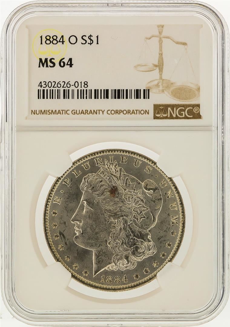 One 1884-O $1 Morgan Silver Dollar NGC Graded MS64. NGC Certified.