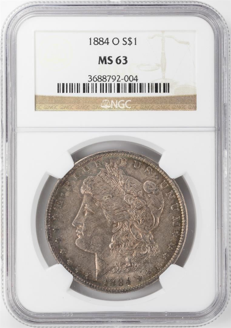One 1884-O $1 Morgan Silver Dollar NGC MS63. NGC Certified.