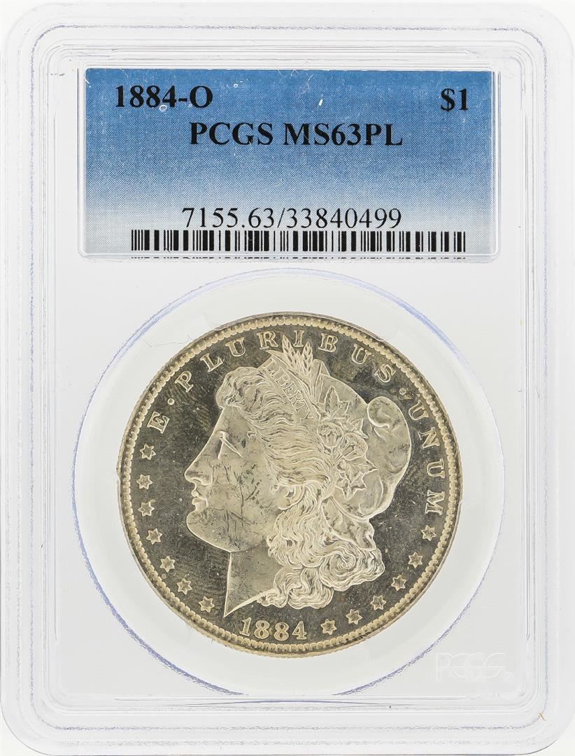 One 1884-O $1 Morgan Silver Dollar PCGS Graded MS63PL. PCGS Graded.