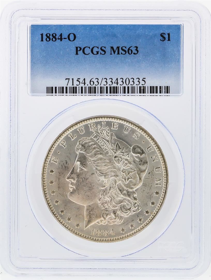 One 1884-O $1 Morgan Silver Dollar PCGS Graded MS63. PCGS Graded.