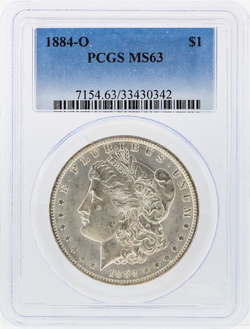 One 1884-O $1 Morgan Silver Dollar PCGS Graded MS63. PCGS Graded.