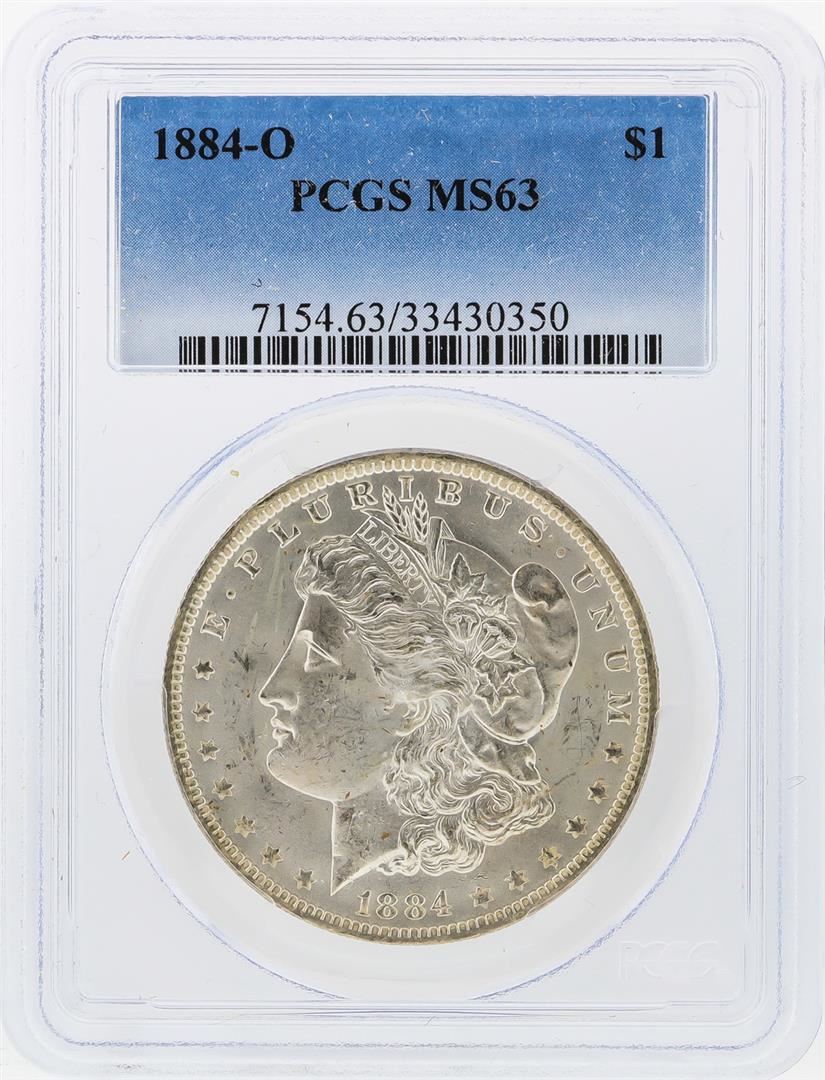 One 1884-O $1 Morgan Silver Dollar PCGS Graded MS63. PCGS Graded.
