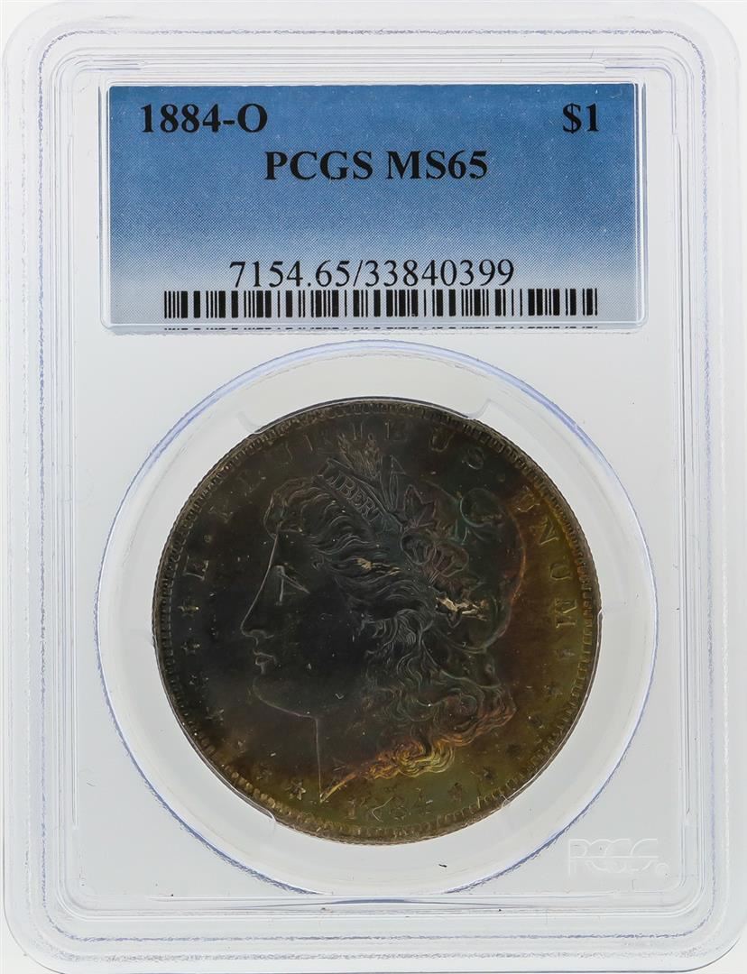 One 1884-O $1 Morgan Silver Dollar PCGS Graded MS65 With Nice Toning. PCGS Graded.