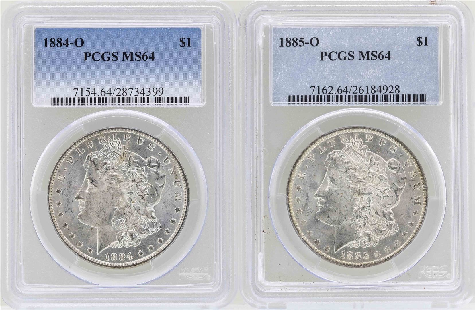 One 1884-O to 1885-O $1 Morgan Silver Dollar Coins PCGS MS64. PCGS Graded.