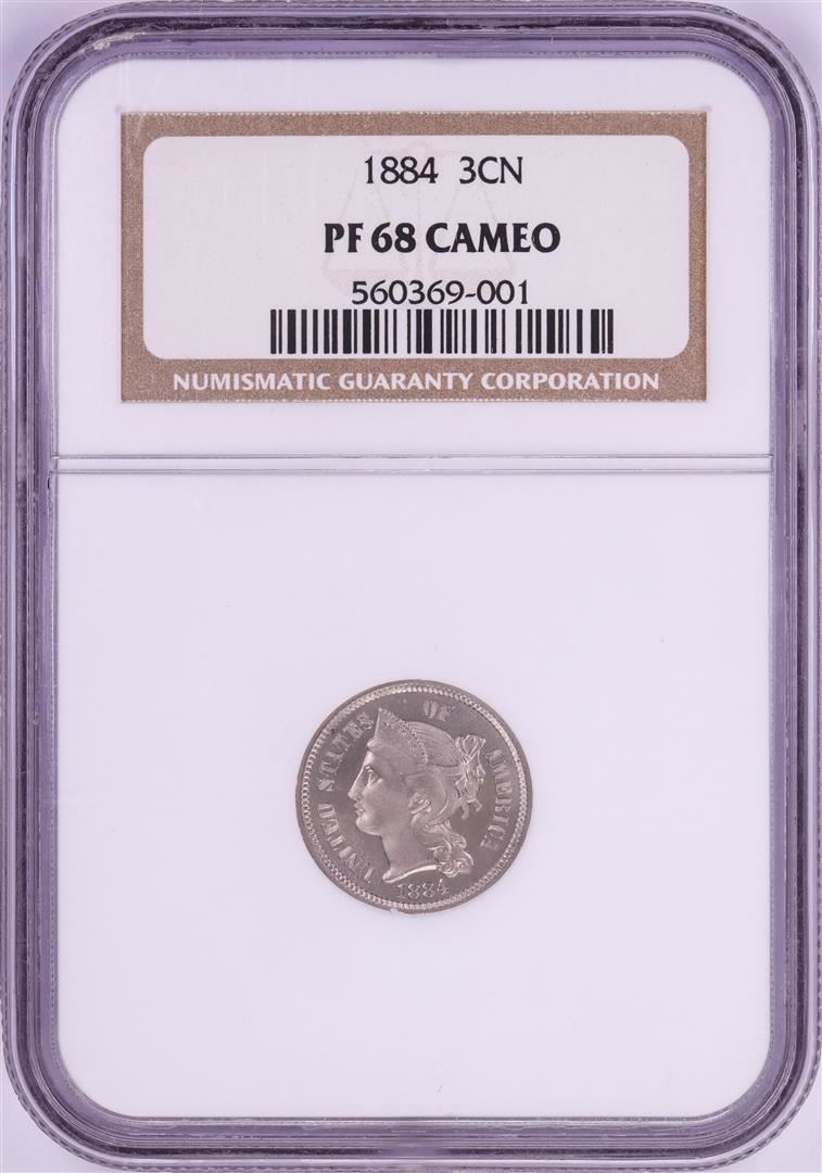 One 1884 Proof Three Cent Nickel Coin NGC PF68 Cameo None Finer. NGC Certified.