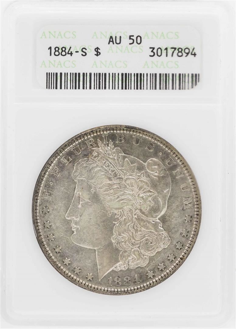 One 1884-S $1 Morgan Silver Dollar Coin ANACS AU50. ANACS Certified.