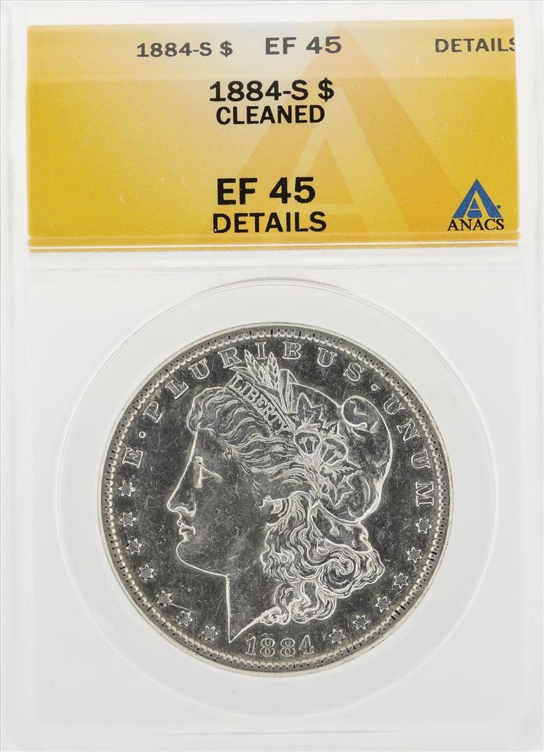 One 1884-S $1 Morgan Silver Dollar Coin Cleaned EF45 Details. ANACS Certified.