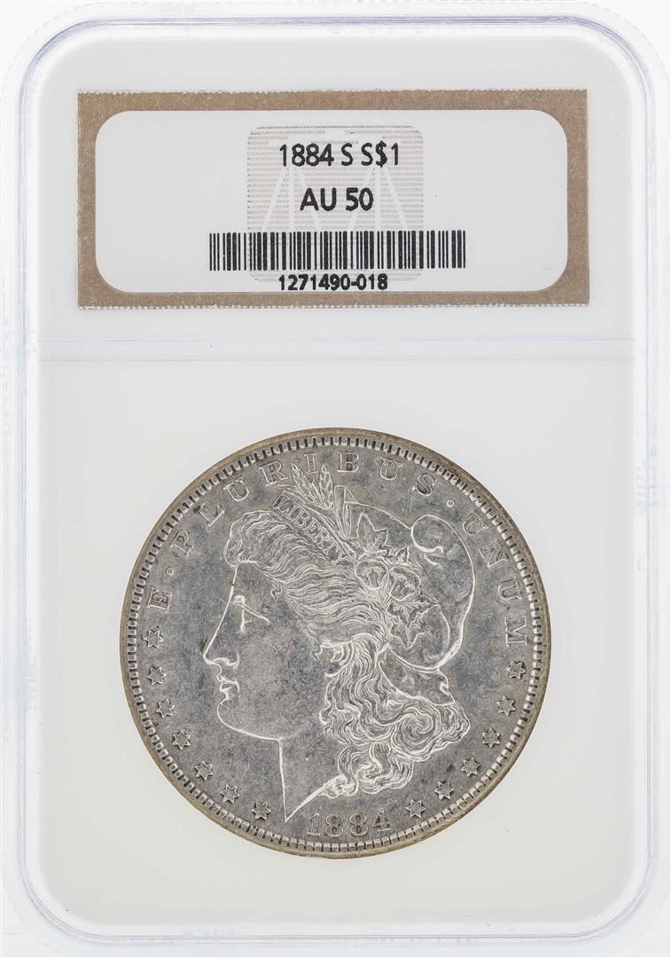 One 1884-S $1 Morgan Silver Dollar Coin NGC AU50. NGC Certified.