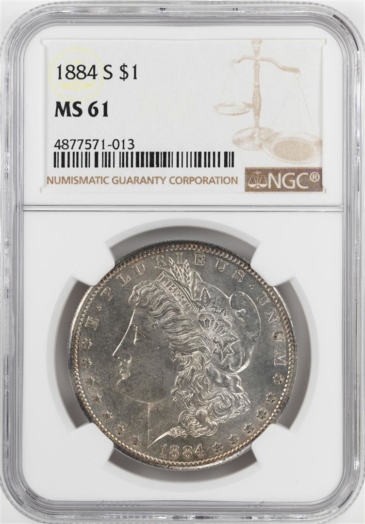 One 1884-S $1 Morgan Silver Dollar Coin NGC MS61. NGC Certified.