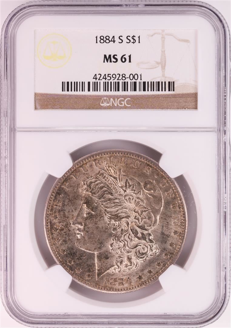 One 1884-S $1 Morgan Silver Dollar Coin NGC MS61. NGC Certified.