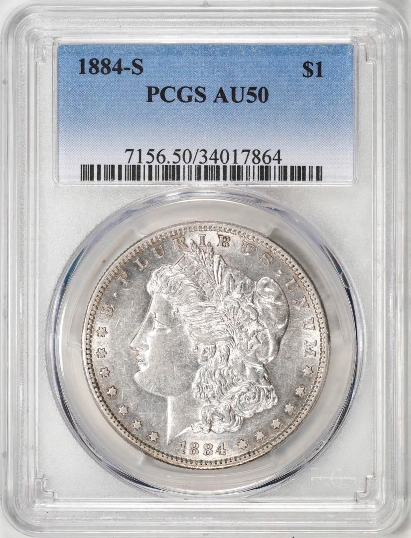 One 1884-S $1 Morgan Silver Dollar Coin PCGS AU50. PCGS Graded.