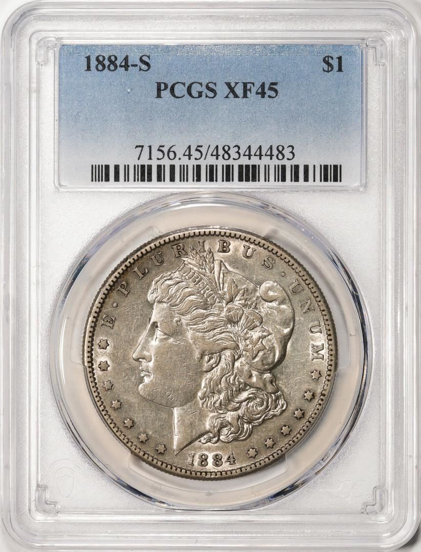 One 1884-S $1 Morgan Silver Dollar Coin PCGS XF45. PCGS Graded.