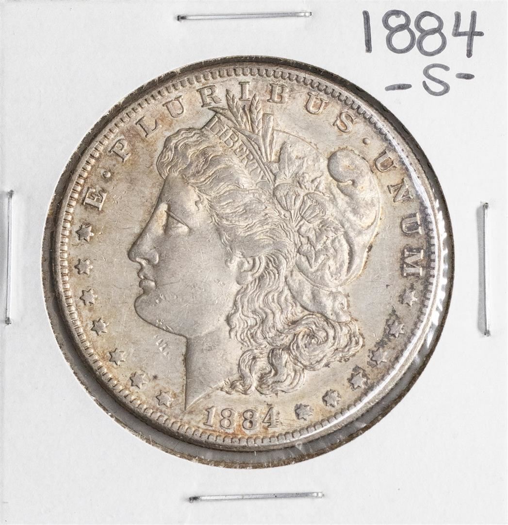 One 1884-S $1 Morgan Silver Dollar Coin.