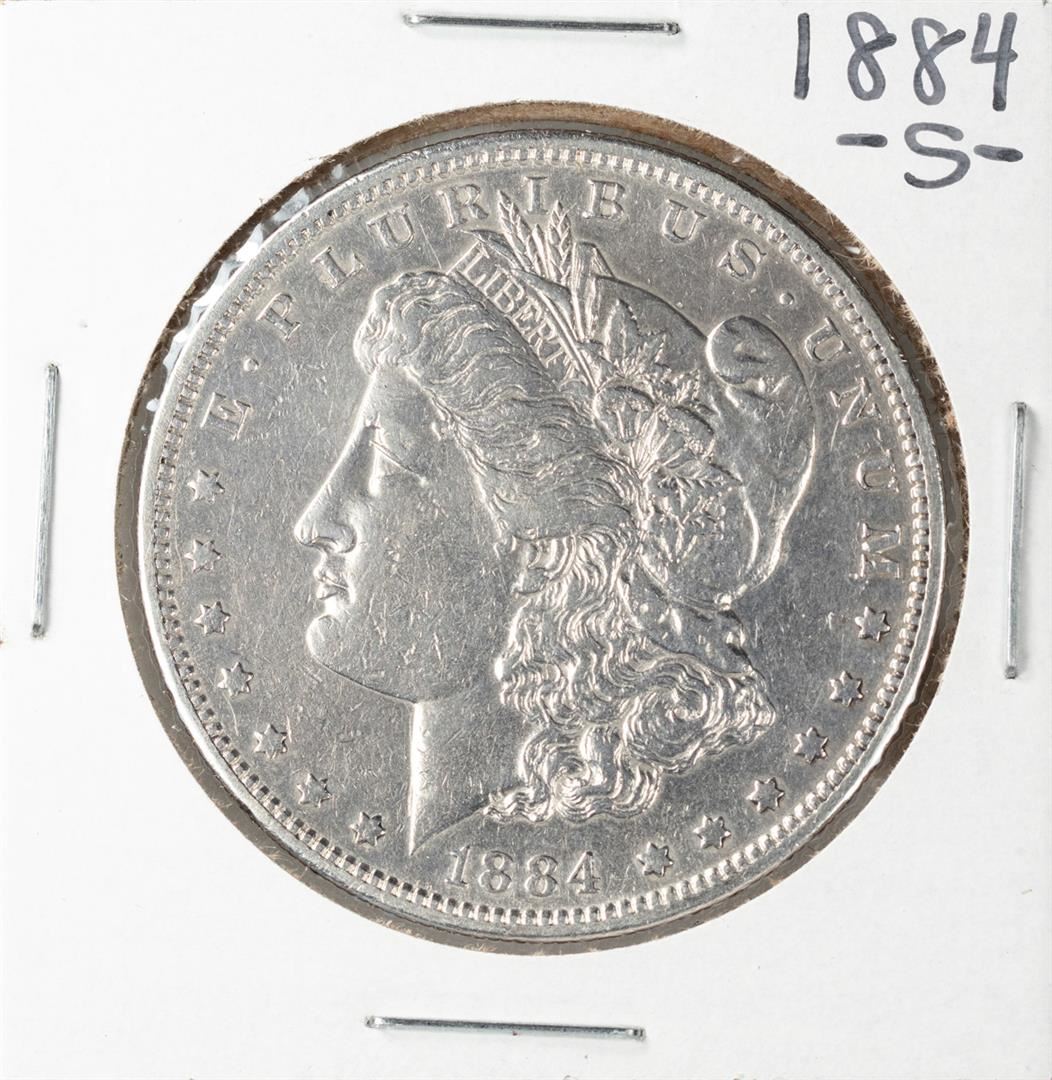 One 1884-S $1 Morgan Silver Dollar Coin.