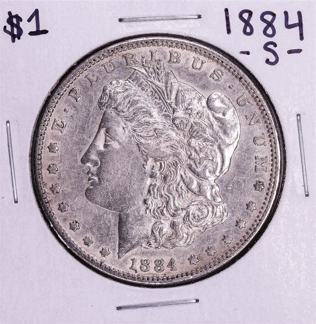 One 1884-S $1 Morgan Silver Dollar Coin.