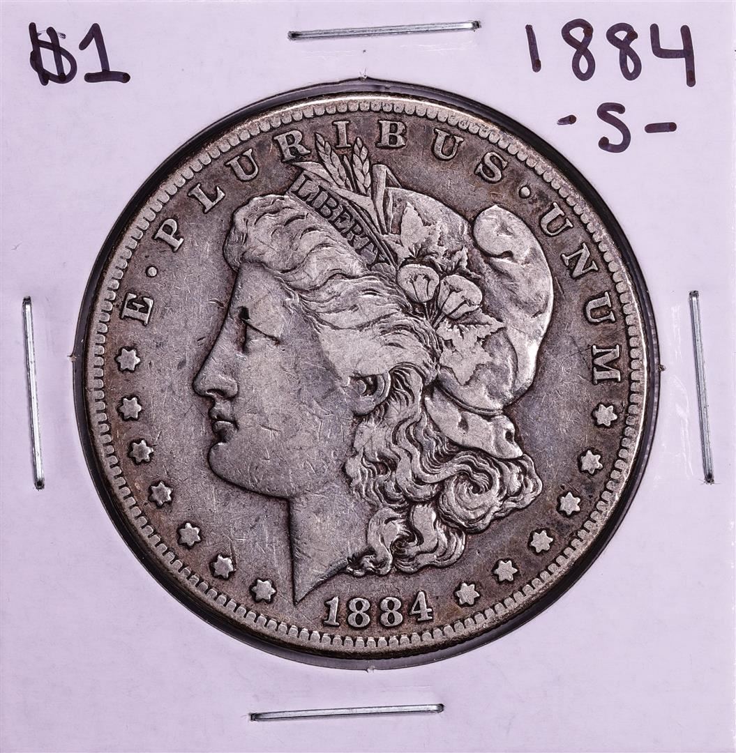 One 1884-S $1 Morgan Silver Dollar Coin.
