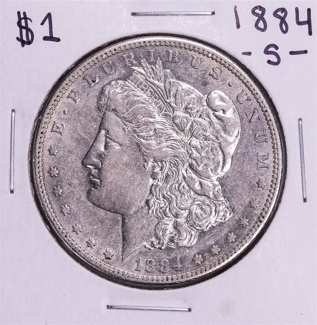 One 1884-S $1 Morgan Silver Dollar Coin.
