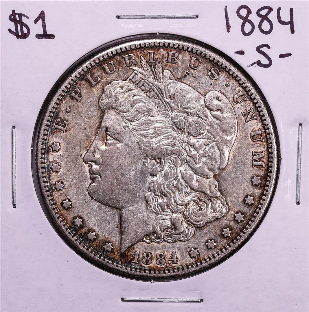 One 1884-S $1 Morgan Silver Dollar Coin.
