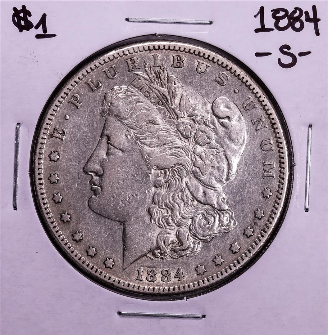 One 1884-S $1 Morgan Silver Dollar Coin.