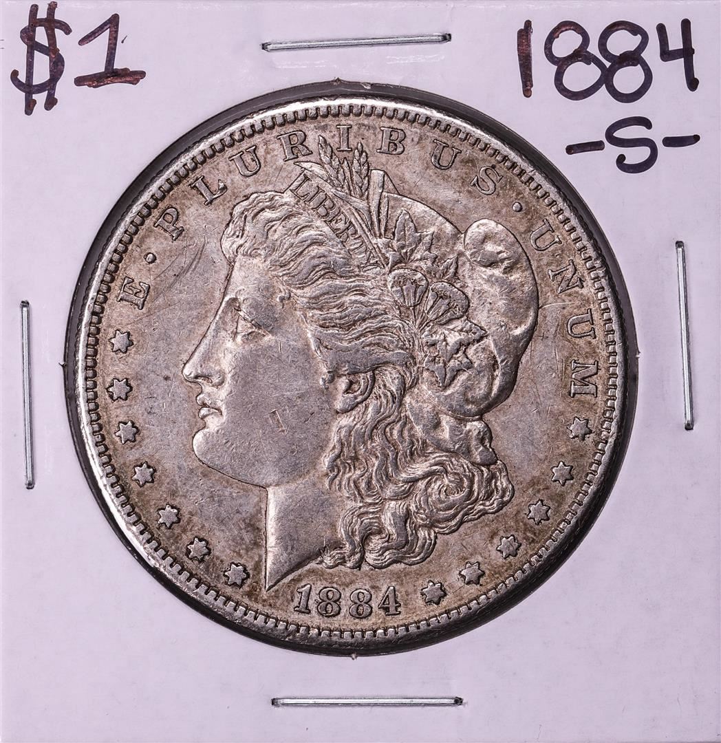 One 1884-S $1 Morgan Silver Dollar Coin.