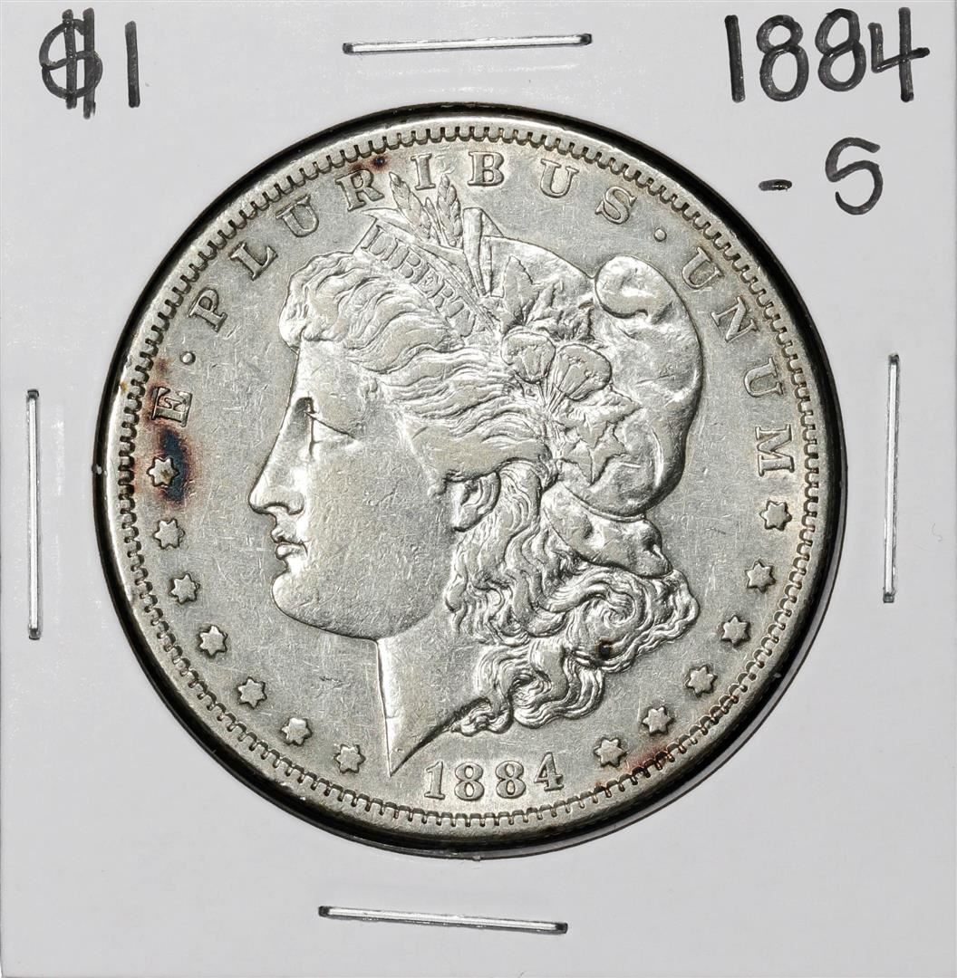One 1884-S $1 Morgan Silver Dollar Coin.