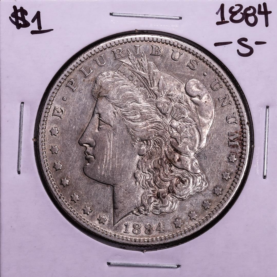One 1884-S $1 Morgan Silver Dollar Coin.