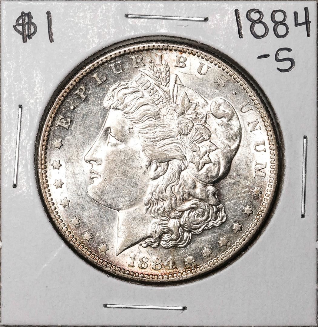One 1884-S $1 Morgan Silver Dollar Coin.