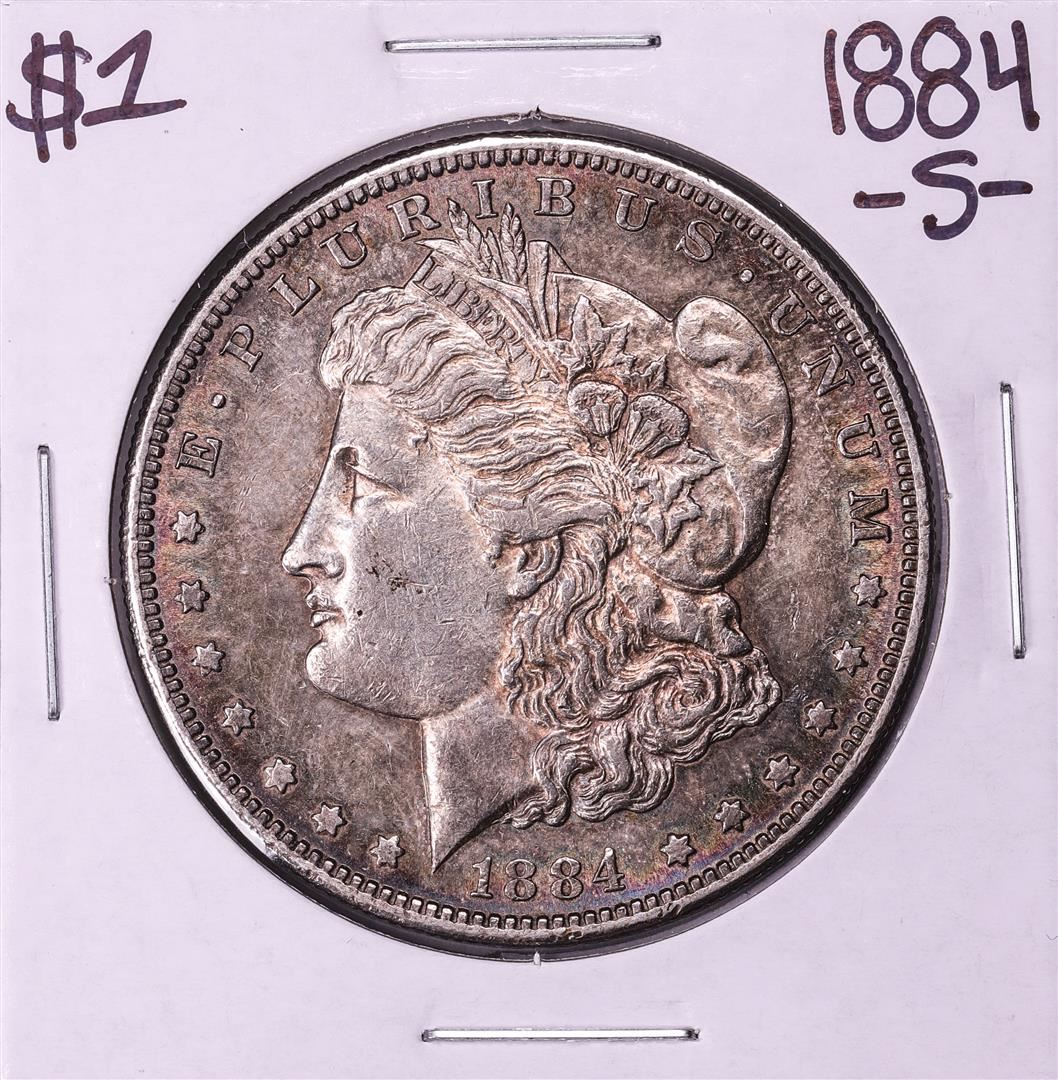 One 1884-S $1 Morgan Silver Dollar Coin.