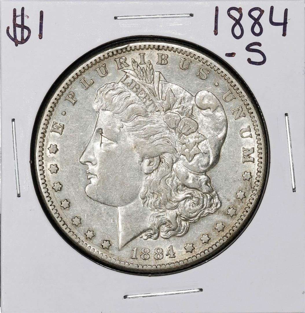 One 1884-S $1 Morgan Silver Dollar Coin.