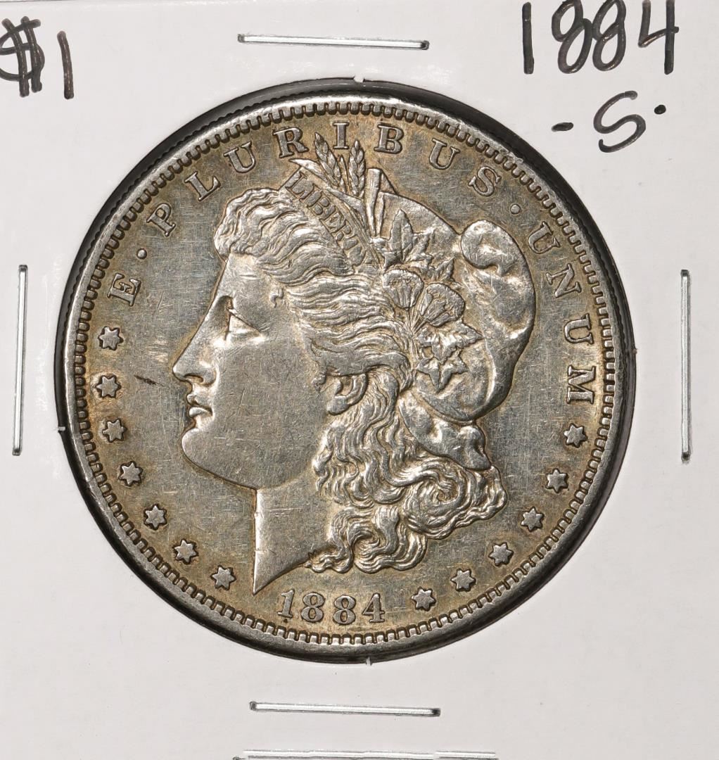 One 1884-S $1 Morgan Silver Dollar Coin.