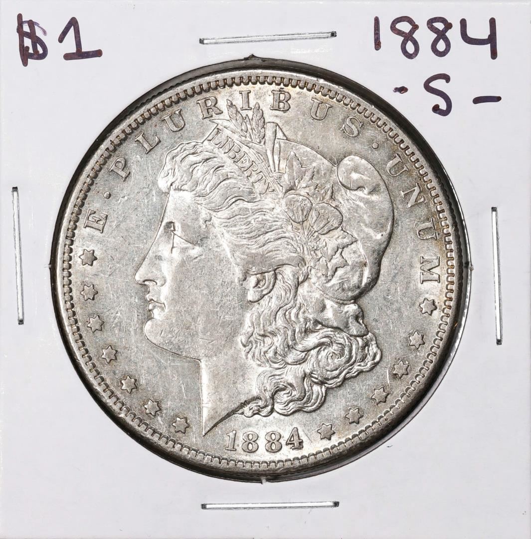 One 1884-S $1 Morgan Silver Dollar Coin.
