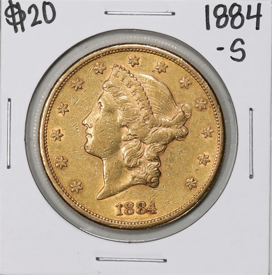 One 1884-S $20 Liberty Head Double Eagle Coin.