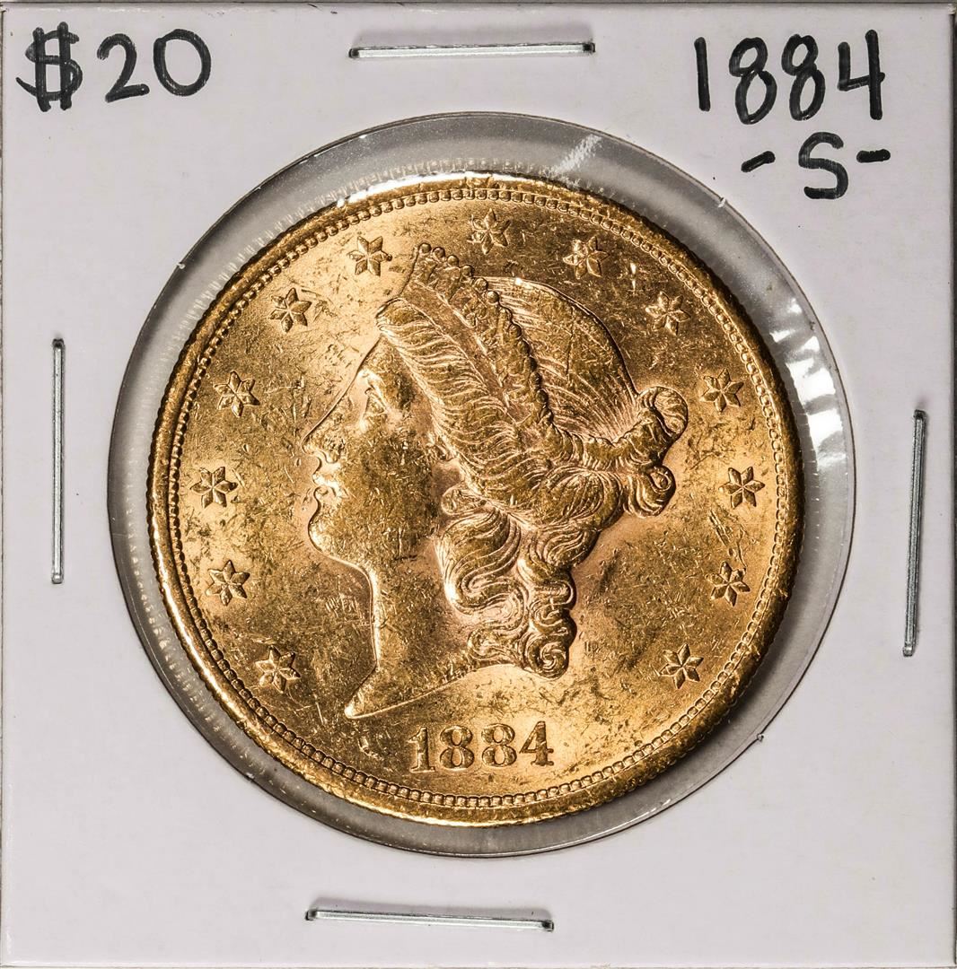 One 1884-S $20 Liberty Head Double Eagle Gold Coin.