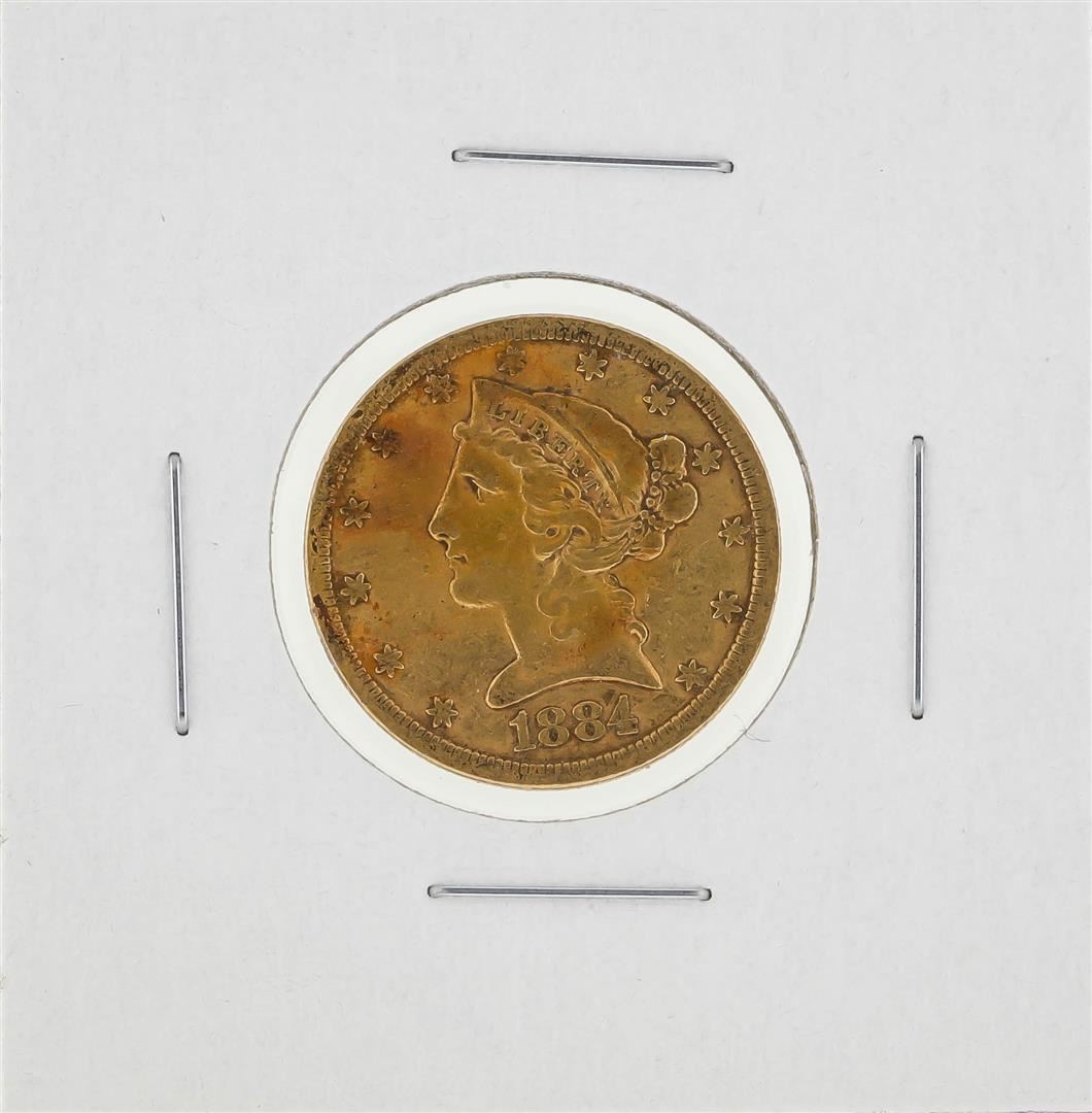 One 1884-S $5 Liberty Head Half Eagle Gold Coin.