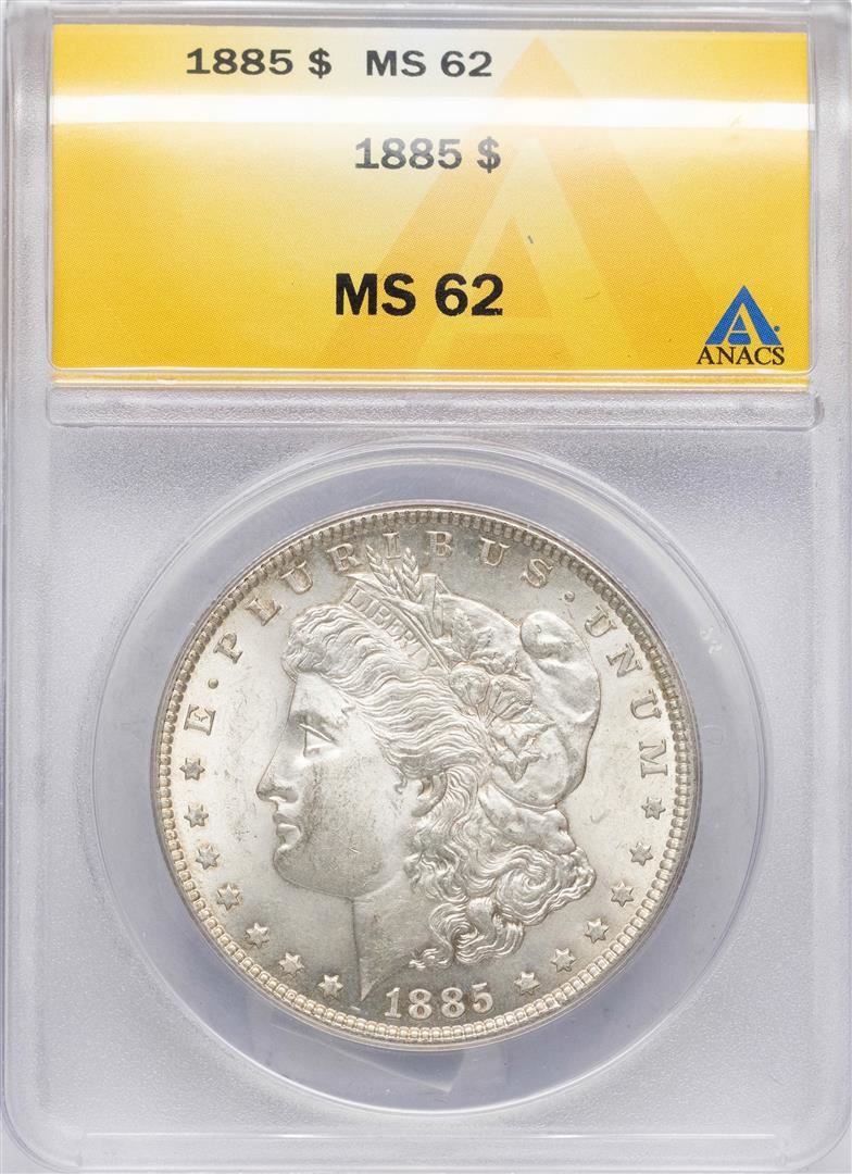 One 1885 $1 Morgan Silver Dollar Coin ANACS MS62. ANACS Certified.