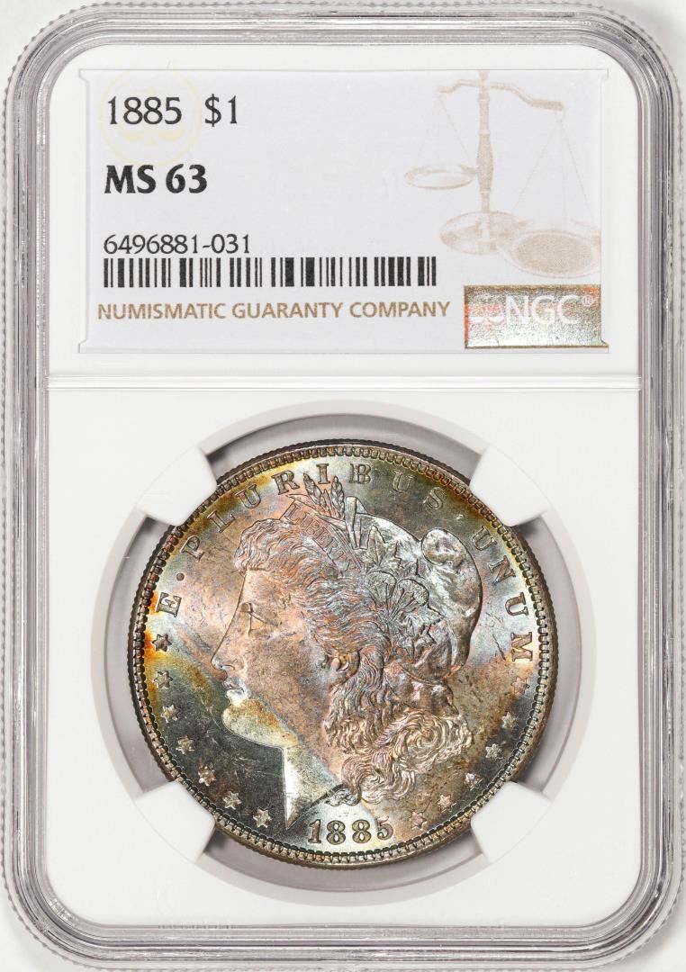 1885 $1 Morgan Silver Dollar Coin NGC MS63 Amazing Toning