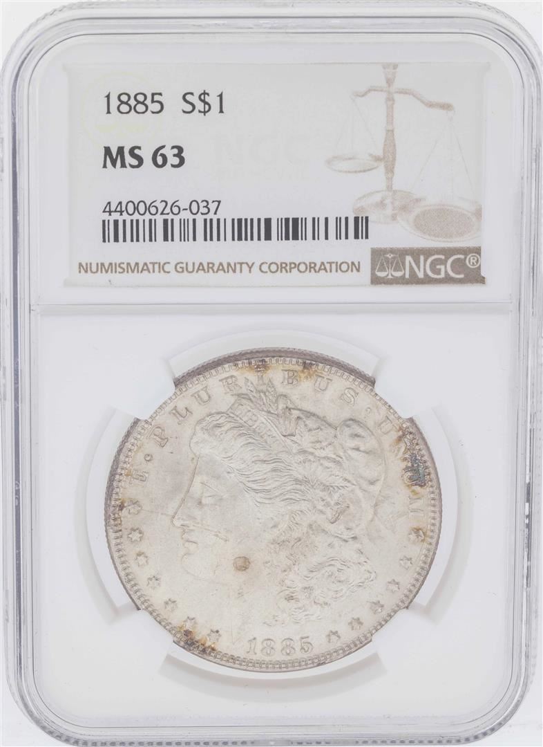 One 1885 $1 Morgan Silver Dollar Coin NGC MS63. NGC Certified.