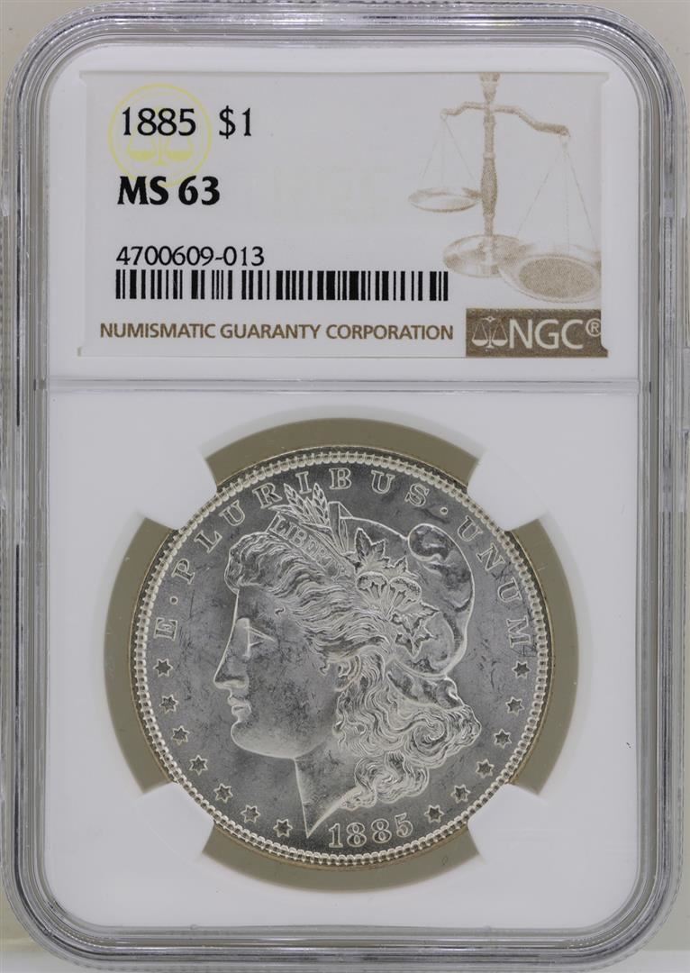 One 1885 $1 Morgan Silver Dollar Coin NGC MS63. NGC Certified.