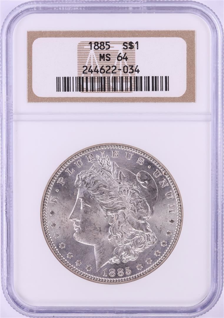 One 1885 $1 Morgan Silver Dollar Coin NGC MS64. NGC Certified.
