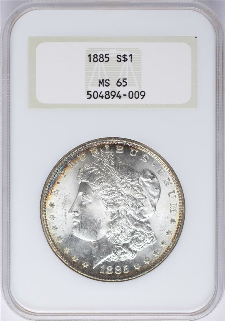 1885 $1 Morgan Silver Dollar Coin NGC MS65 Nice Toning Old Holder