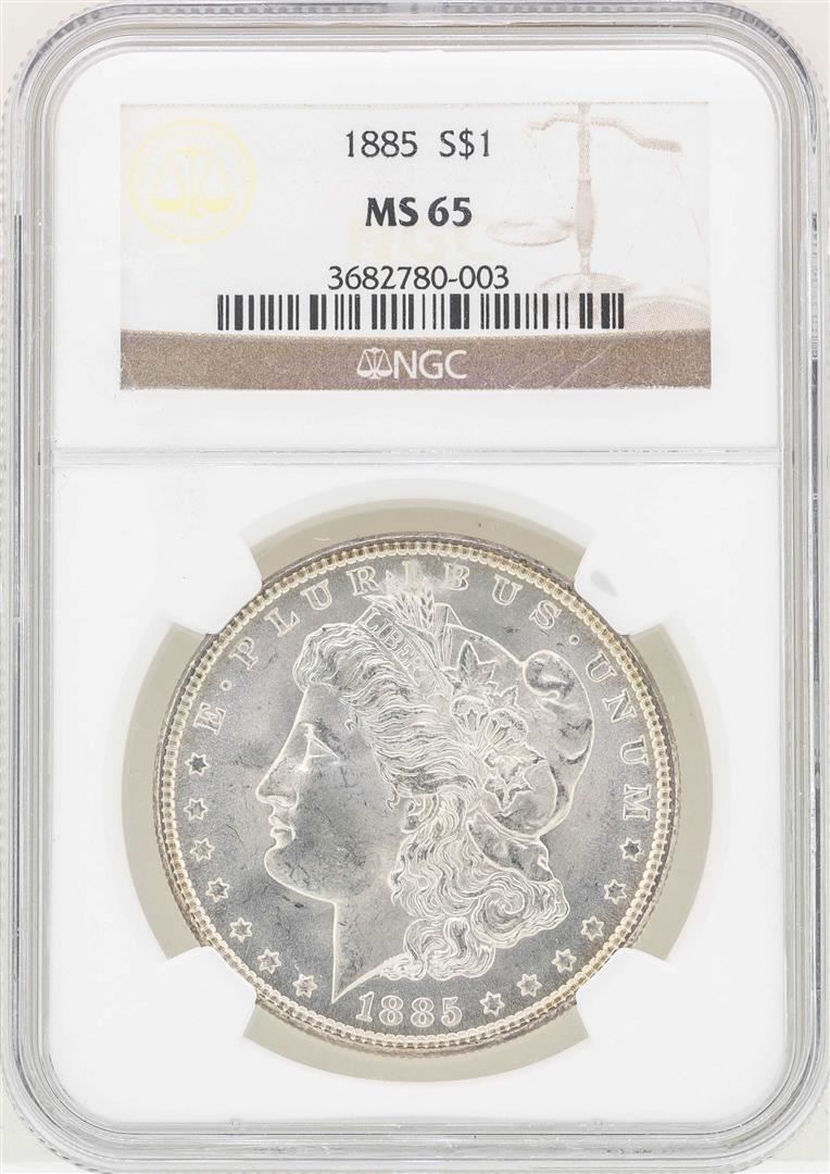 One 1885 $1 Morgan Silver Dollar Coin NGC MS65. NGC Certified.