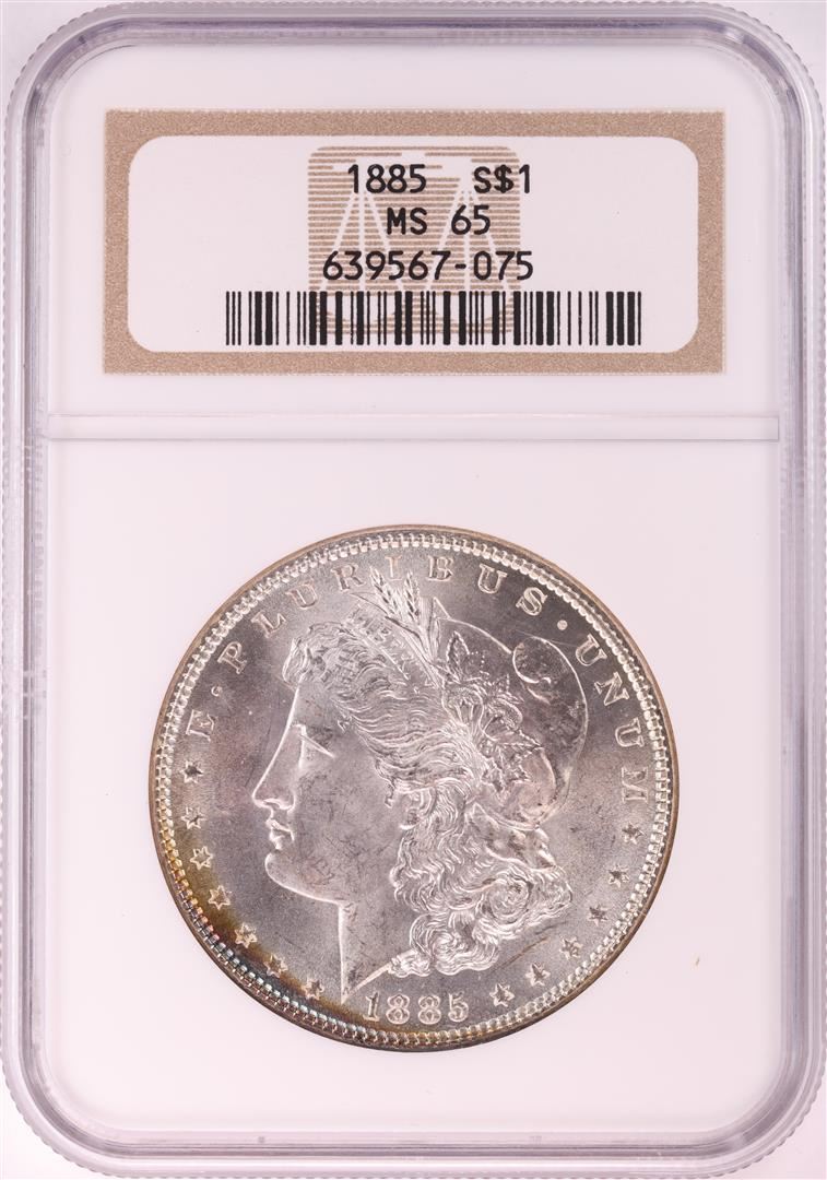 One 1885 $1 Morgan Silver Dollar Coin NGC MS65. NGC Certified.