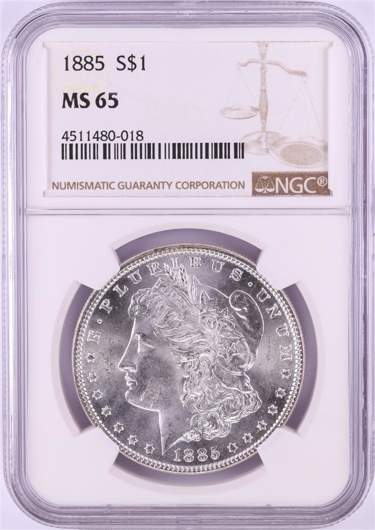 One 1885 $1 Morgan Silver Dollar Coin NGC MS65. NGC Certified.