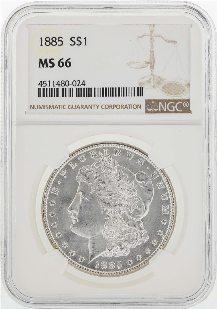1885 $1 Morgan Silver Dollar Coin NGC MS66