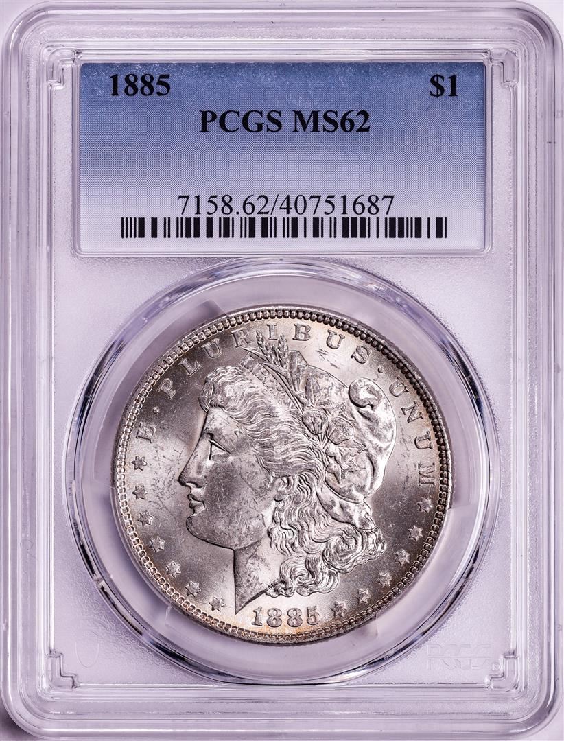 One 1885 $1 Morgan Silver Dollar Coin PCGS MS62. PCGS Graded.