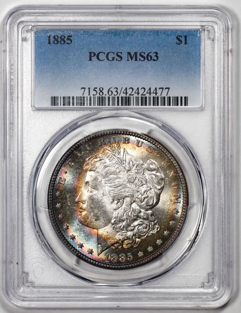 1885 $1 Morgan Silver Dollar Coin PCGS MS63 Amazing Toning