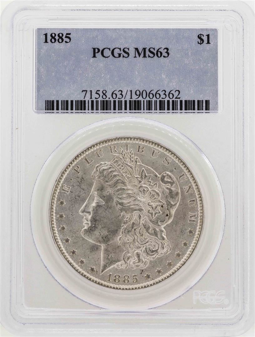 One 1885 $1 Morgan Silver Dollar Coin PCGS MS63. PCGS Graded.